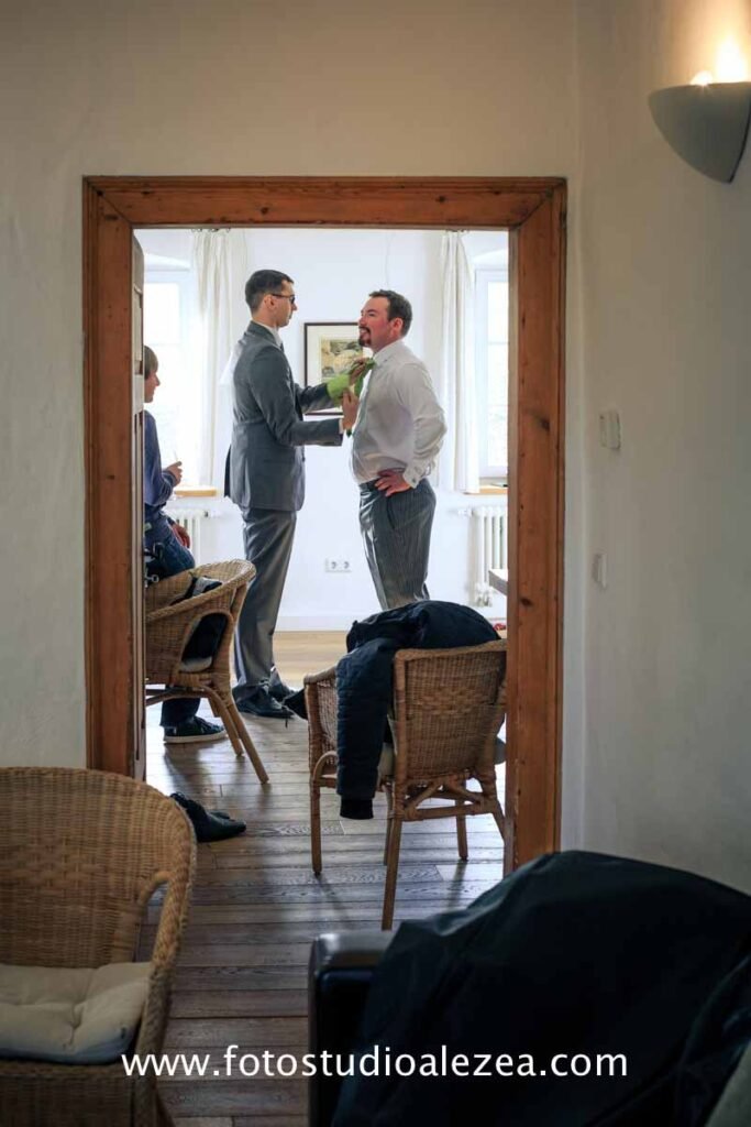 Vom Ankleiden bis zum ersten Blick in den Spiegel – ich halte die Vorbereitungen des Bräutigams in einer ruhigen, respektvollen und dennoch kreativen Weise fest. Dabei entstehen elegante Porträts, aber auch spontane, echte Augenblicke mit Freunden, Geschwistern oder Eltern.